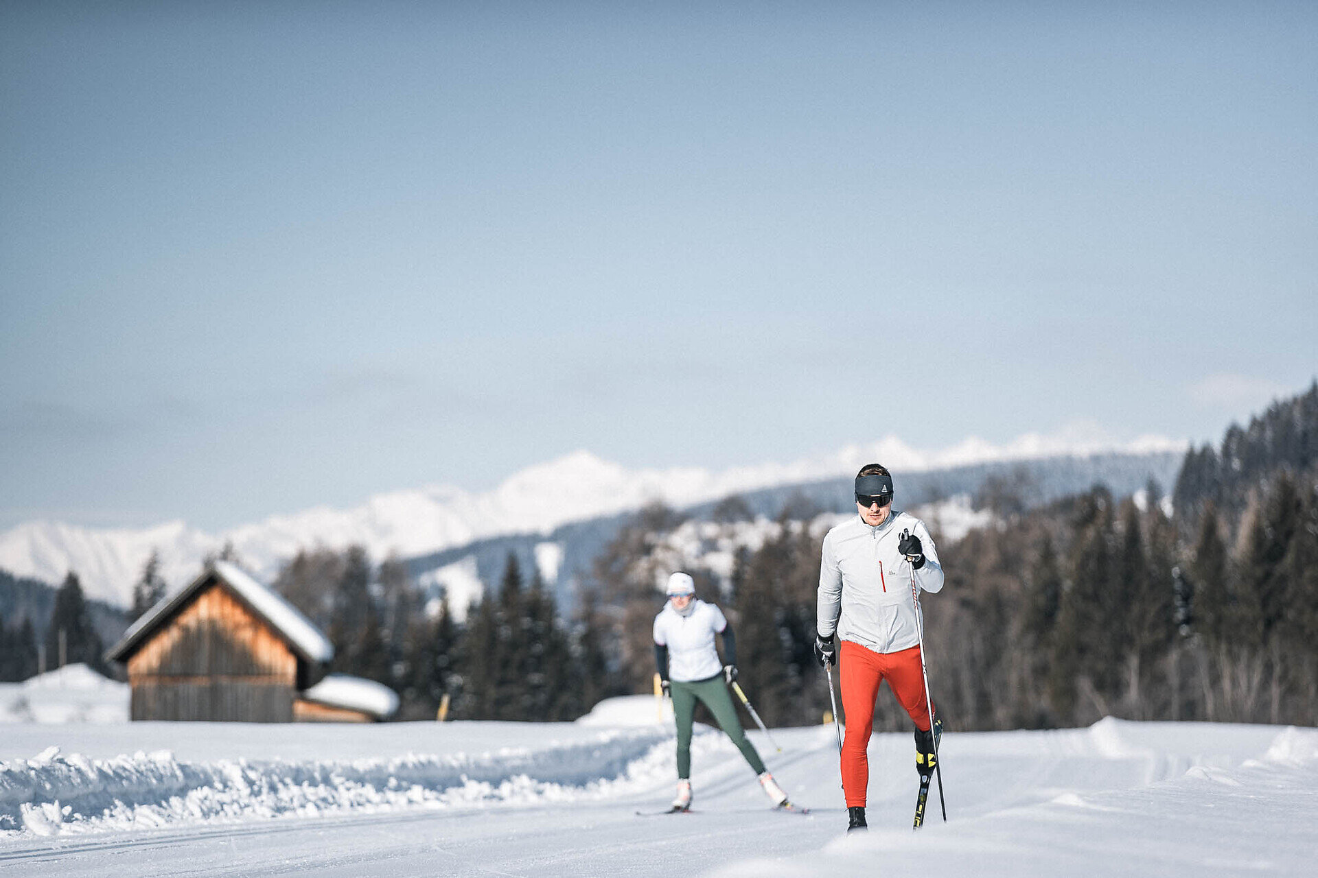 Die schattseitig gelegene Loipe führt von Niederdorf nach Welsberg.