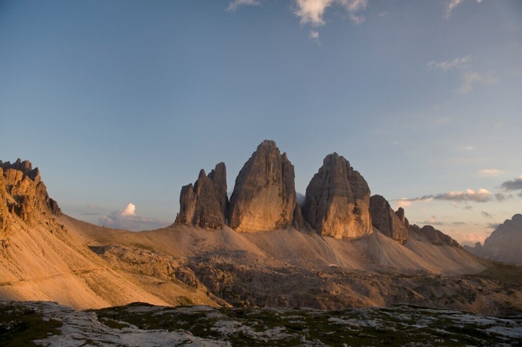 Am Start beherrscht der Seekofel mit seiner brüchigen, steil zum Pragser Wildsee abfallenden Felswand die Landschaft, am Ziel ist es die Sextener Rotwand, mit ihren Spitzen und den Schauplätzen des Ersten Weltkrieges. Dazwischen erheben sich der Dürrenstein, die Drei Zinnen und der Paternkofel, der gewaltige Zwölfer- und der spitze Einserkofel, an dem die Spuren des Felssturzes noch gut erkennbar sind. Dieser unbekannte Höhenweg ist als fünftägige Wanderung konzipiert. Er zieht sich von Westen nach Osten durch die Pragser und die Sextener Dolomiten, streift viele der bedeutendsten und meistbesuchten Schutzhütten der Gegend und überrascht mit überwältigenden Ausblicken auf die bezauberndsten Gipfel der Kalkalpen. Der erste Abschnitt – ungefähr anderthalb Stunden Gehzeit – verläuft über den bekanntesten Trekkingpfad der Bleichen Berge, den Höhenweg 1, der am Pragser Wildsee beginnt und sich ins Reich der Fanes, in die Cortineser Berge, zur Civetta und den Belluneser Alpen hin erstreckt. Im weiteren Verlauf werden auch andere berühmte Pfade begangen, wie der Aufstieg von der Plätzwiese zum Dürrenstein, der Pfad zwischen Drei-Zinnen- und Lavaredo-Hütte und der Weg des Fischleintals. Erlebnisse in einsamer und wilder Umgebung bieten das Karst-Hochplateau rund um die Rossalm-Hütte, der Abstieg von der Plätzwiese ins Höhlensteintal, der lange Aufstieg über das Rienztal und die Umrundung der Sextener Rotwand. Hier kann man die Dolomiten hautnah erleben. Der Wanderer wird auf seinem Weg nicht nur zu den Überresten des Weltkrieges und den Zeugnissen der Geschichte des Alpinismus geleitet, er kann sich auch an zauberhaften Ausblicken erfreuen, die Gesellschaft von Hirschen und Gämsen genießen und die Blütezeit in zwei der schönsten und interessantesten Naturparks in Südtirol miterleben.