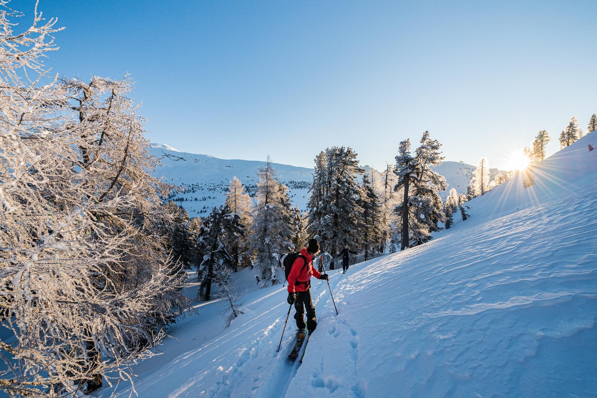 Die Skitour führt zu einem wunderschönen Skiberg oberhalb des Pragser Wildsees, mit einer spektakulären Abfahrt.