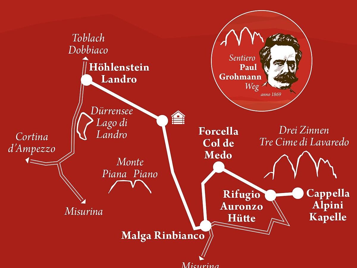 Der Paul Grohmann Weg ist eine Wanderung in einem malerisch ruhigen Tal, abseits von großen Touristenströmen. Im Jahre 1869 haben diesen Weg die Erstbegeher (Paul Grohmann, Peter Salcher und Franz Innerkofler) der Großen Zinne als Zustieg genutzt.