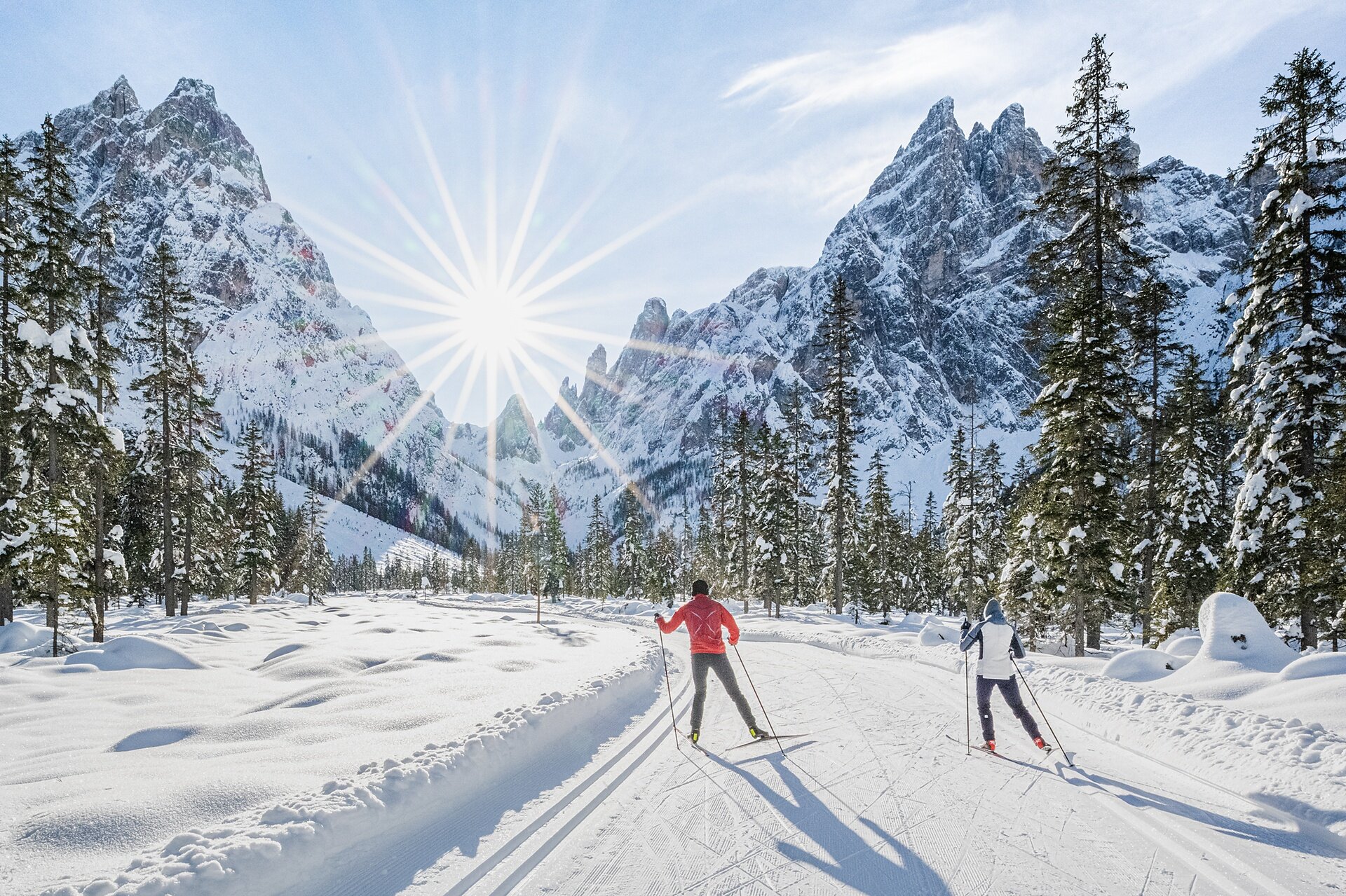 Das Auto am besten bei der Talstation Haunold parken oder direkt mit dem Bus dorthin kommen. Vom Parkplatz aus geht auch schon direkt die präparierte Loipe los. Dann immer Richtung Westen laufen, am Drau-Ursprung vorbei und weiter bis nach Toblach.