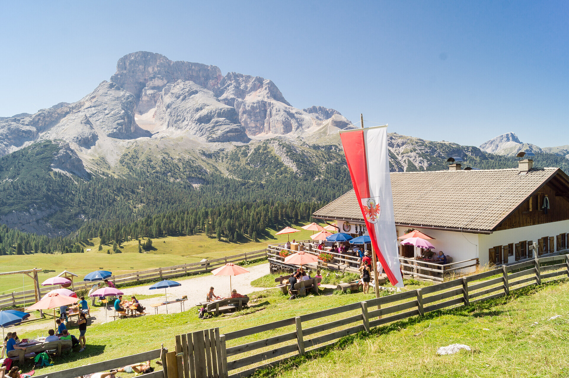 Dich erwartet eine einzigartige Aussicht auf die Hohe Gaisl, Drei Zinnen, Tofana und Monte Cristallo!