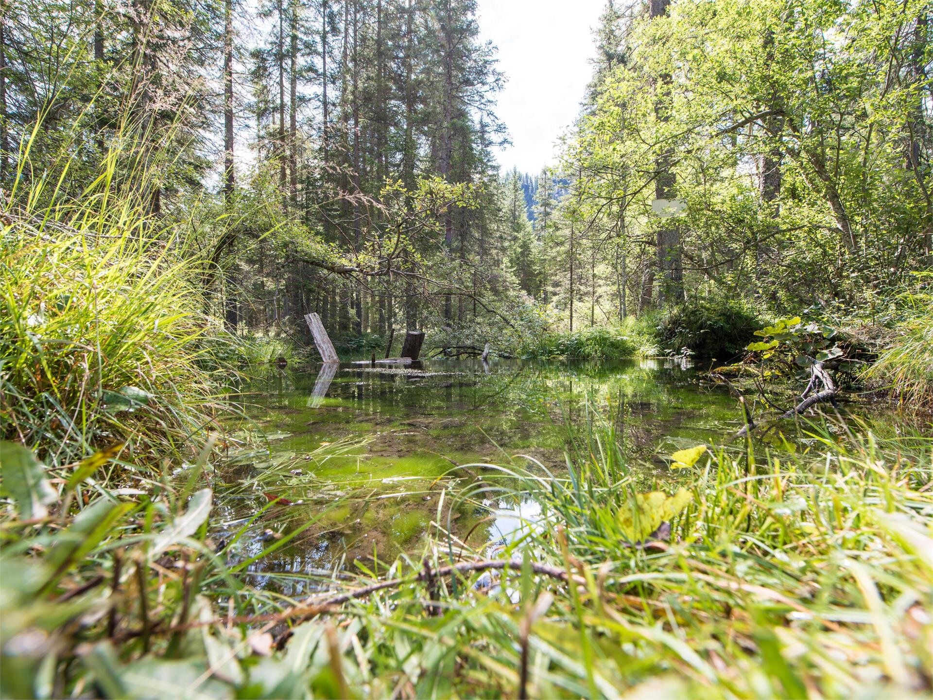 Der etwa 1,5 km lange Lehrpfad, genannt "Quellenweg", ist sehr leicht begehbar und führt dich direkt am nostalgischen Fischweiher von Bad Altprags vorbei. Entlang des Lehrpfades erklären dir zahlreiche Informationstafeln die wichtigsten Quellmerkmale. Zurück zum Ausgangspunkt kannst du über den Wanderweg Nr. 37 wandern. Die Gehzeit beträgt ca. 1 Stunde mit der Markierungsnummer: Nr. 37