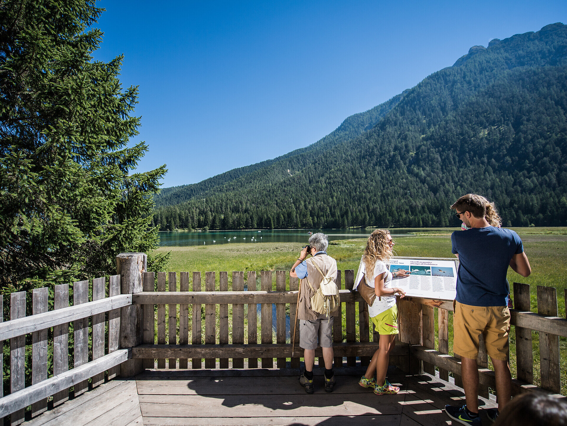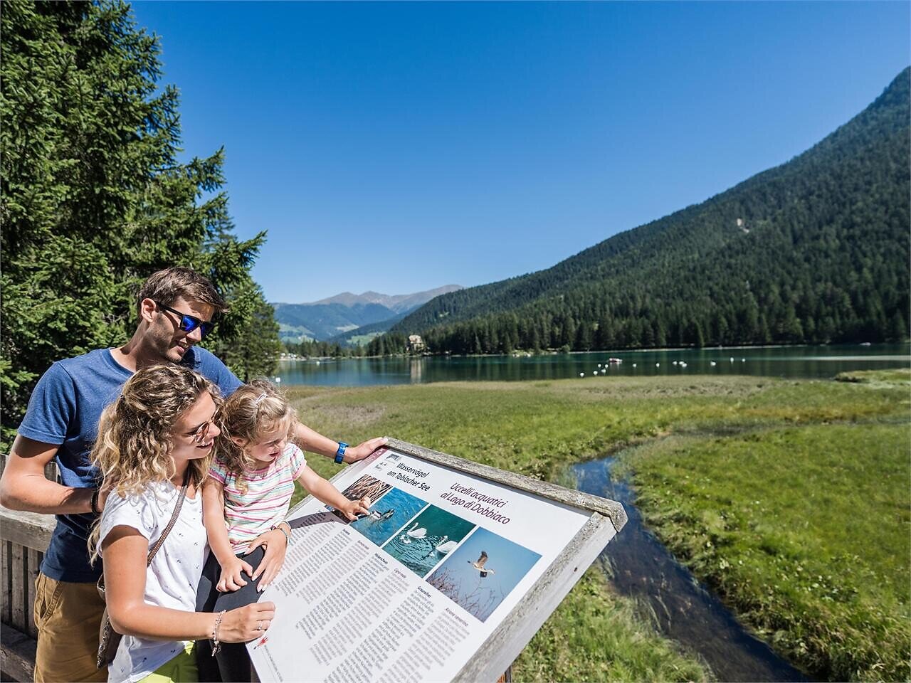Diese Familienwanderung führt um den wunderschön gelegenen Toblacher See. Rund um den See gibt ein Naturerlebnisweg mit 11 Stationen wertvolle Informationen über Flora, Fauna und Geomorphologie des Gebietes und klärt vor allem über die Besonderheiten des Toblachersees auf. Die Aussichtsplattform am westlichen Ufer bietet Rastmöglichkeit sowie Blick auf die Tier- und Pflanzenwelt und die Verlandungszone. Zudem sollte das besondere und sehr abwechslungsreiche Panorama des Rundwegs erwähnt werden.