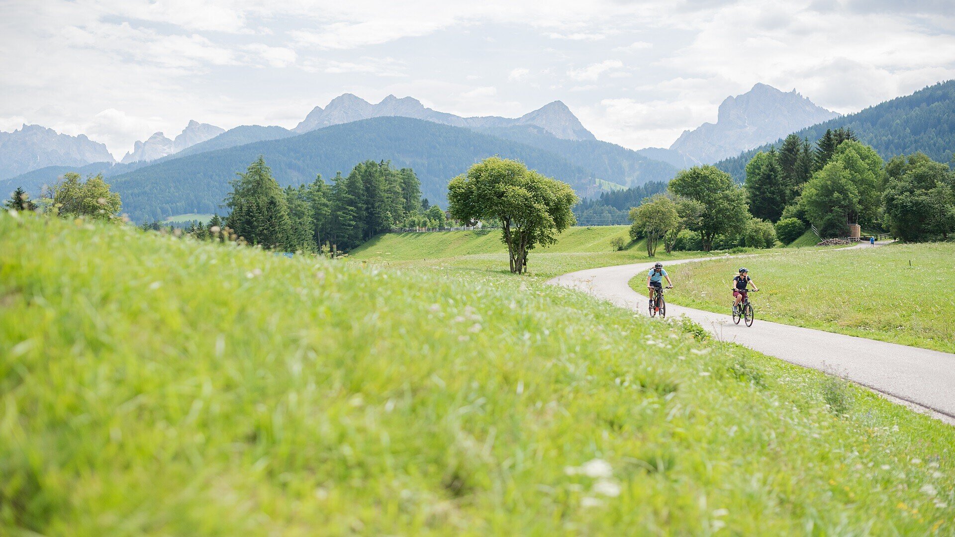 Entlang dem Fluss Rienz, erreicht man den Olanger Talkessel mit dem Blick auf den berühmten Skiberg Kronplatz. Der Radweg führt nun weiter zum malerischen Städtchen Bruneck.