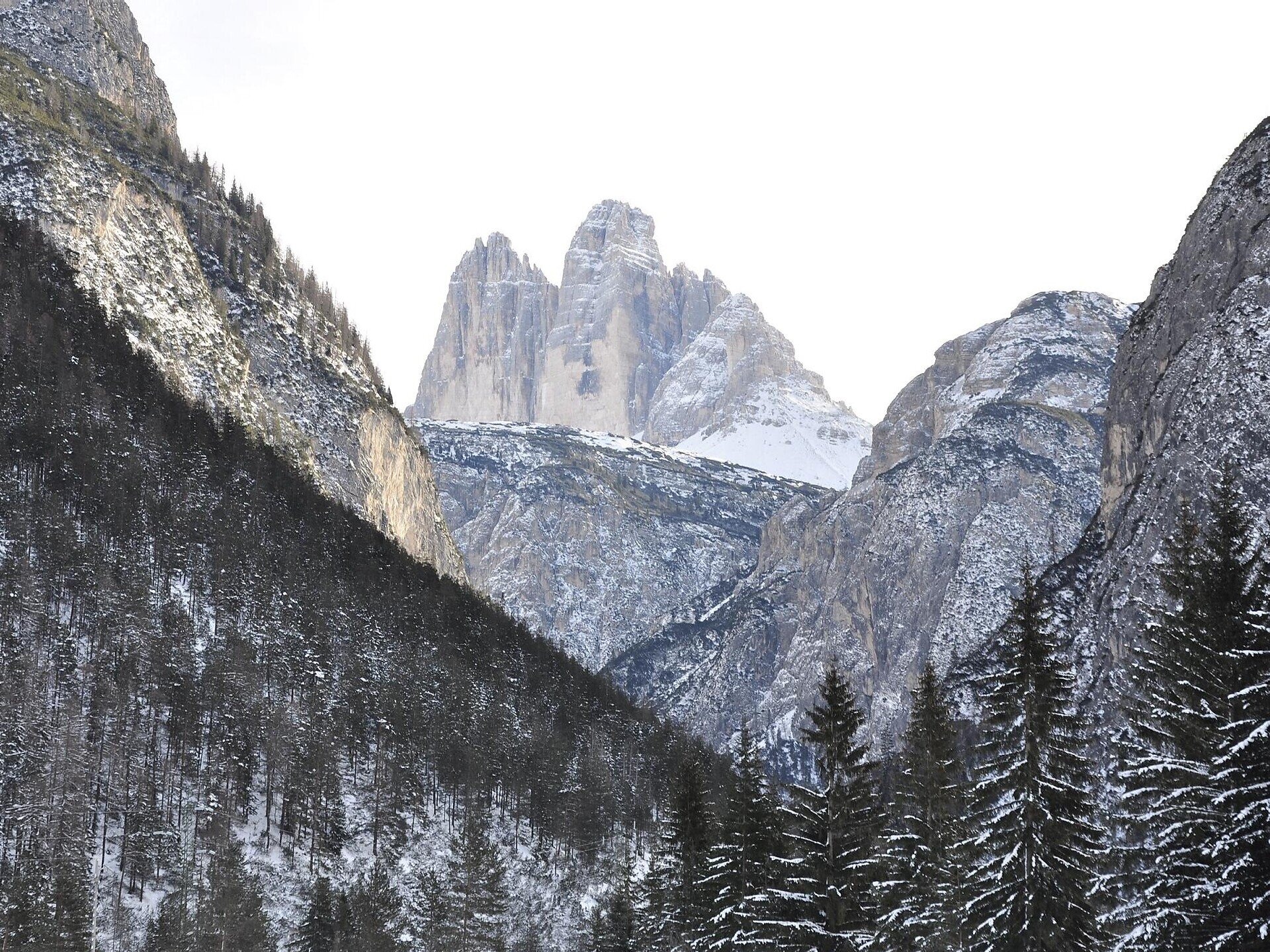 Diese einfachen Schneeschuhwanderung, führt zwar nicht direkt hoch zu den Drei Zinnen, allerdings hat man diese von Beginn der Tour immer im Blick.