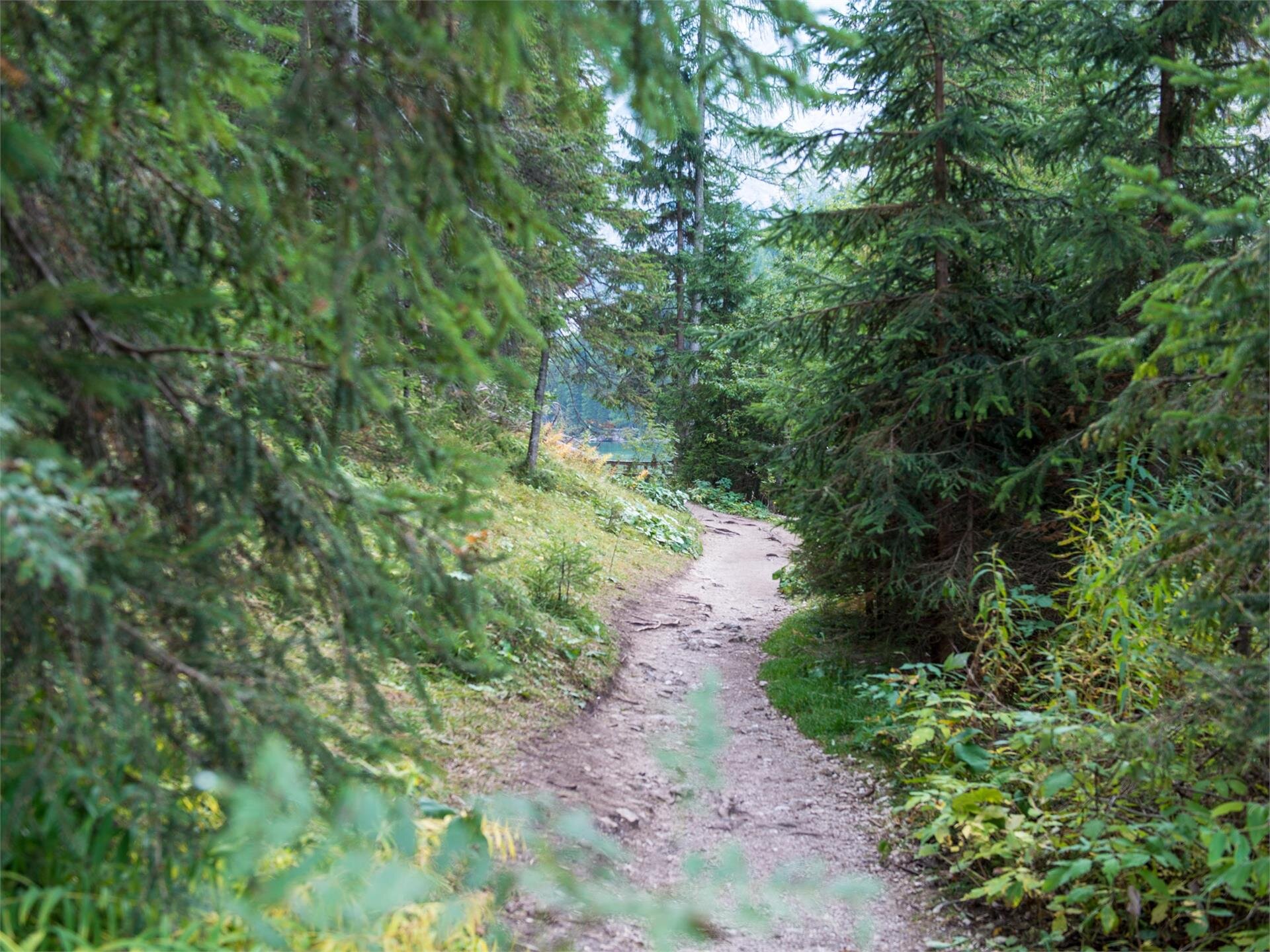 Abwechslungsreiche Rundwanderung in ruhiger Umgebung mit schönem Ausblick auf den Pragser Wildsee sowie auf die umliegenden Berge. Vom Pragser Wildsee zum Riedlhof, über den Wanderweg zu den Kaserhütten, biege lings ab und gehe weiter über den leicht ansteigenden und schmalen Steig bis zum Schwarzbergsattel. Der Abstieg ins Grünwaldtal ist teilweise etwas steiler, eine kurze Stelle ist mit einem Drahtseil gesichert. Vom Grünwaldtal kannst du wieder zurück zum Ausgangspunkt Pragser Wildsee gehen. Gehzeit: 4,5 Std. Markierung: Nr. 20, Nr. 61, Nr. 19, Nr. 1 Schwierigkeitsgrad: mäßig anstrengend