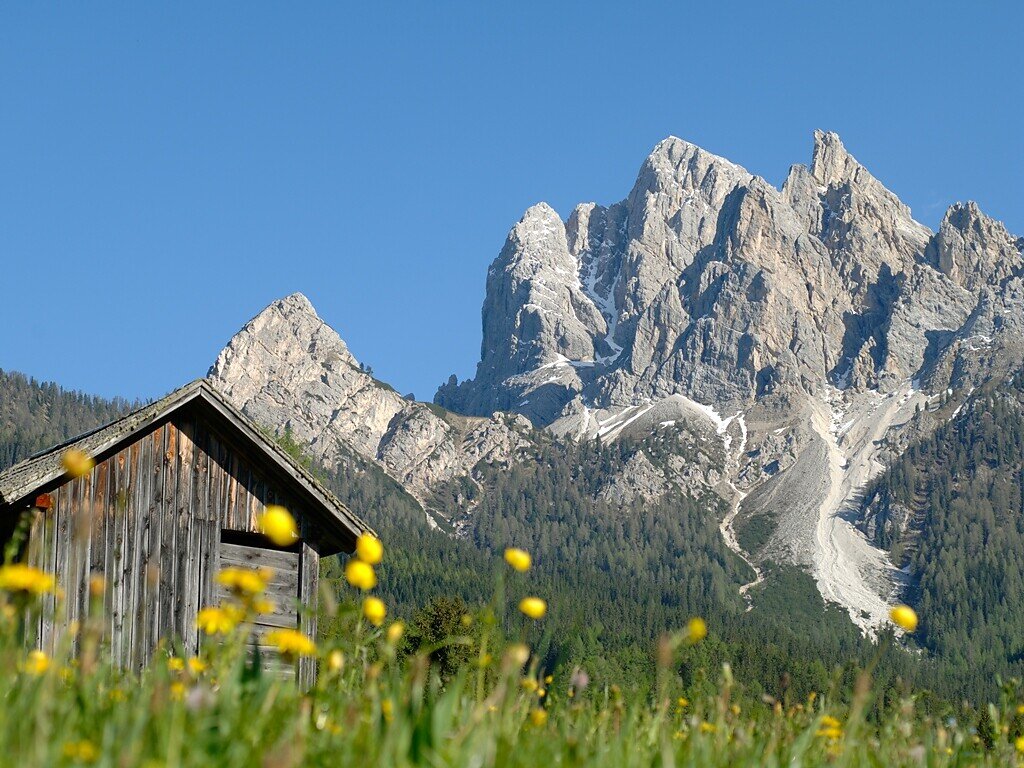 Der östlich vom Hochplateau der Plätzwiese gelegene Dürrenstein bietet etwas für alle Ansprüche und Erwartungen. Ein überragender Aussichtsberg mit umfassender Rundsicht. Du startest vom Parkplatz Plätzwiese auf der Schotterstraße bis zum Berggasthof Plätzwiese. Gleich nach dem Berggasthaus biegst du links ab und gehst auf dem breiten Weg Nr. 40 über die Wiesen nach Osten aufwärts zum querenden Dolomiten Höhenweg Nr. 3. Nun wanderst du nordwärts die steilen, felsdurchsetzten Grashänge der Dürrenstein-Südwestfranke zum Teil in Kehren aufwärts, weiter über Geröll bis zum Vorgipfel. Nach einem kleinen Sattel befindet sich eine kurze, mit Drahtseil abgesicherte Stelle. Ab dort wanderst du weiter zum Gipfelkreuz. Die Gehzeit beträgt 4 Stunden. Markierung: Nr. 40 Schwierigkeitsgrad: anstrengend; Trittsicherheit und Schwindelfreiheit Zu beachten: Diese Wanderung ist nur für größere Kinder mit Ausdauer und Wandererfahrung geeignet; am Übergang vom Vor- zum Hauptgipfel empfiehlt es sich, Kinder mit einem Seil zu sichern. Der größte Teil der Wanderung ist stark der Sonne ausgesetzt.