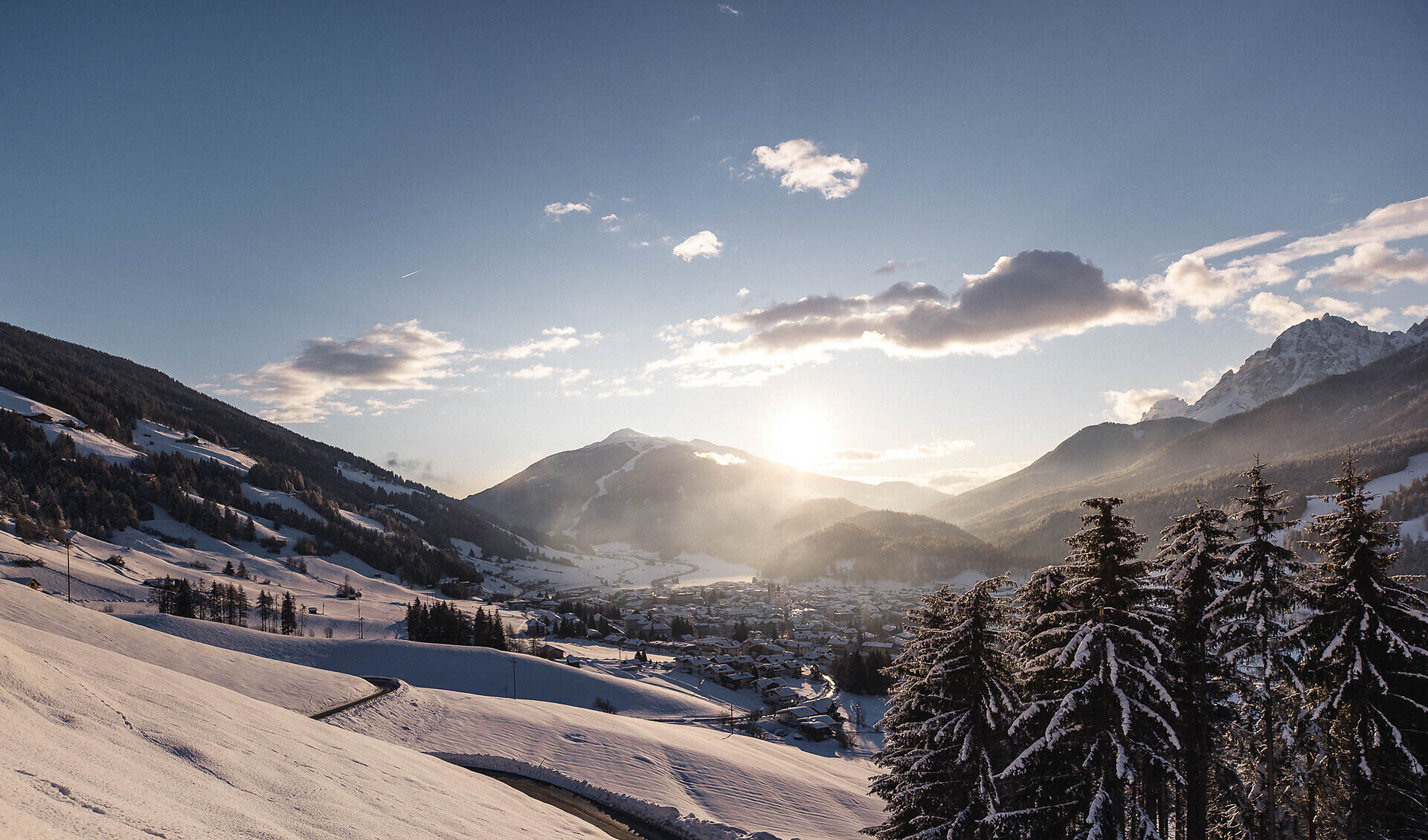 Leichte Winterwanderung von Innichen über das Klammschlössl, vorbei am Berghotel Schopfenhof bis nach Toblach. Rückweg mit dem Bus von Toblach Zentrum bzw. Zug von Neutoblach.
