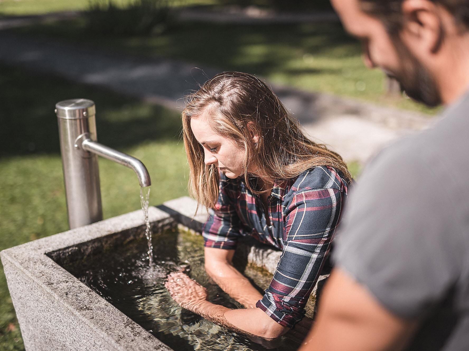 Kneipp trainer Anna explains the basics of Kneipp therapy in the Kneipp park. Application tips and tricks for pure wellness in Niederdorf.