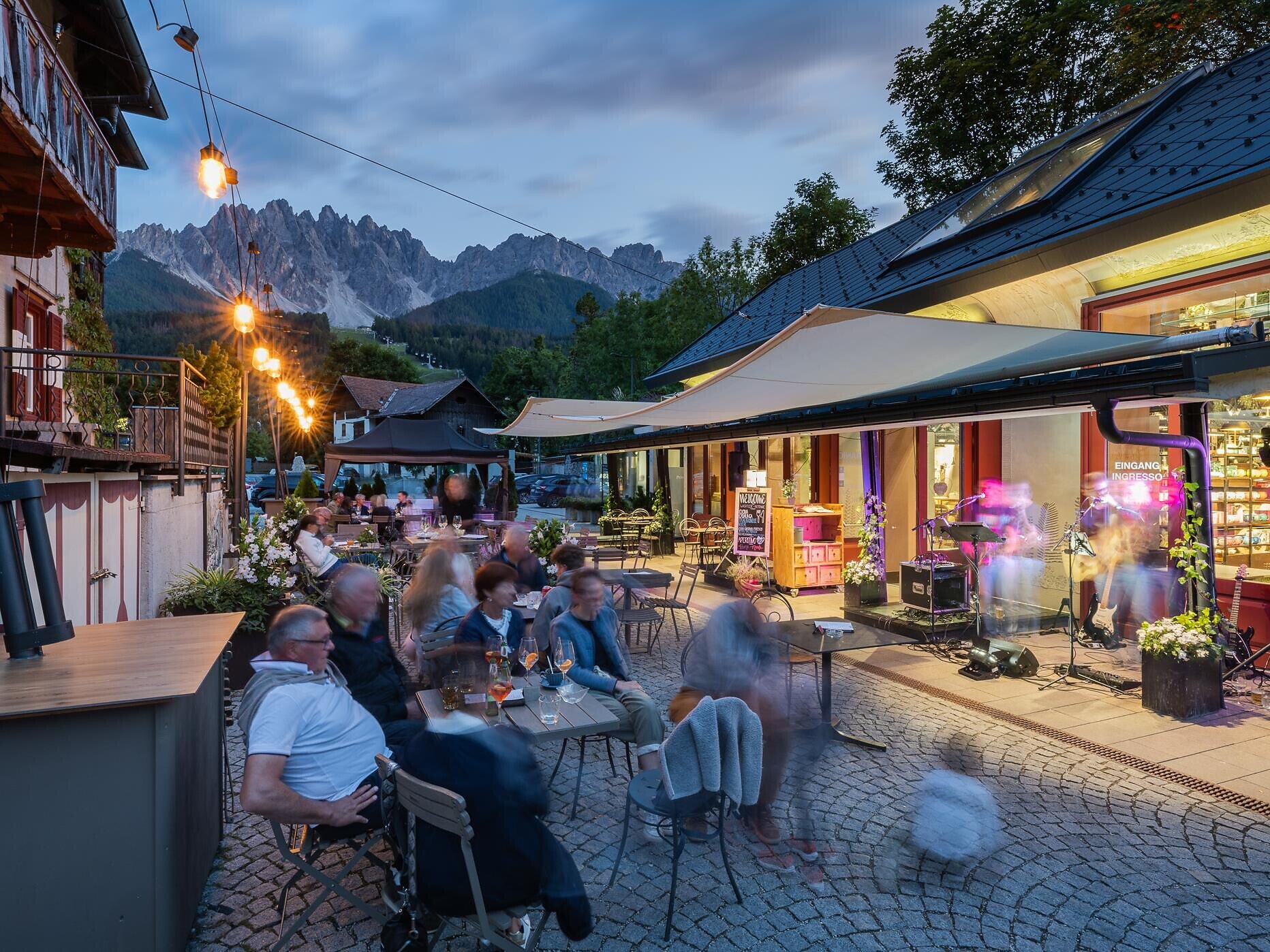 Food, drinks and music in the town center