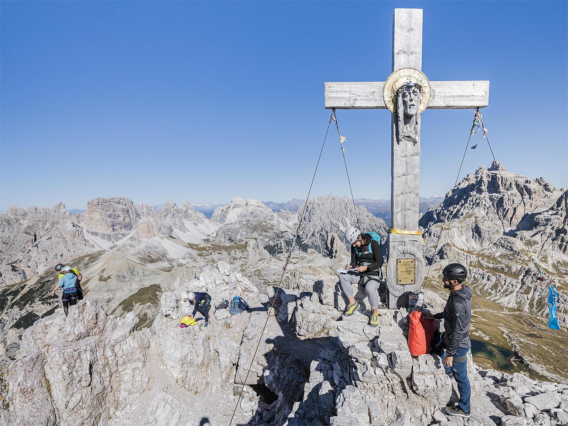 Once you reach the summit (2,745 m), you are rewarded with a fantastic panorama and a unique view of the north faces of the Drei Zinnen. After a break at the top, the descent takes you through long tunnels from World War I, when part of the front ran right through the Dolomites.